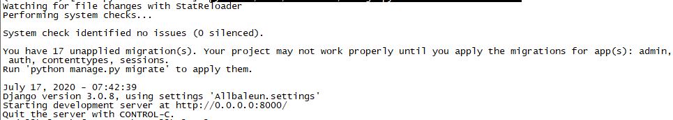 Django version 3.0.8, using settings 'Allbaleun.settings'