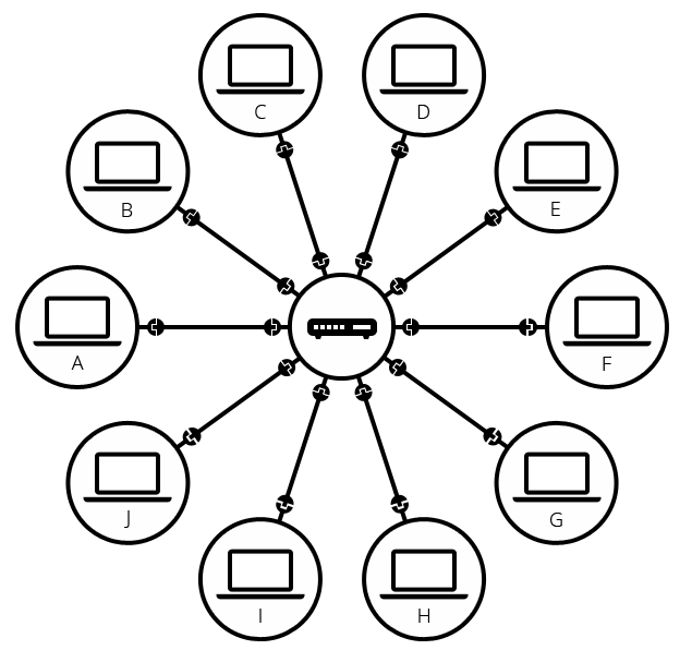 또한 컴퓨터를 추가할때마다 각각에 컴퓨터에 선을 연결해야한다