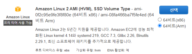 AWS Linux2 64비트(Arm)선택