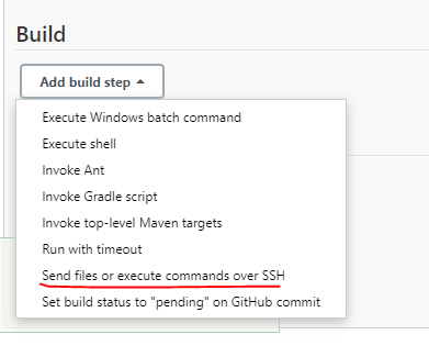 하단에 Build에서 Send files or execute commands over SSH를 선택
