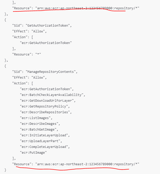 "Resource": "arn:aws:ecr:ap-northeast-2:123456789000:repository/*"