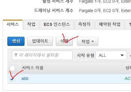 첫 생성 후 이미 서비스가 하나 있을텐데 해당 서비스는 지워주세요