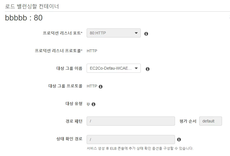 아까 클러스터 생성할때 생성된 로드밸런서가 생성되어 있습니다